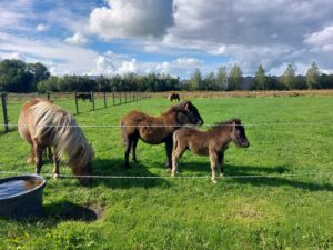 Dit jaar zijn er bij mij 7 veulens geboren. Alle veulens hebben de zwarte 2e premie hengst L.A. van stal polderzicht als vader. Ik had gehoopt, dat er misschien uit mijn 7 drachtige merries een vos merrieveulen geboren zou worden (liefst in de grote maat en met witte manen en staart), maar dat mocht dus nog niet zo zijn.